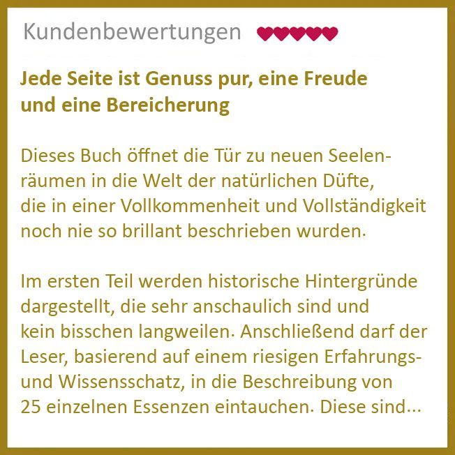 KULINARIK. Denn mit allen 21 ausführlich im Buch vorgestellten farbigen Düften werden zum einen echte Parfüms kreiert, zum andern verfügen sie über eine eindeutig kulinarische Seite wie etwa