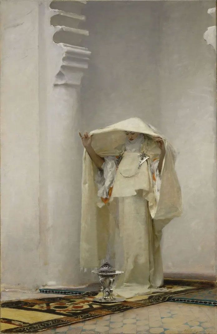 Ausschnitt des Gemäldes von John Singer Sargent, - stellt das Räuchern, Reinigen und Parfümieren der Kleidung mittels Räucherung dar,